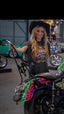 Cody Renee Cameron is best known for her work on the Mayans M.C. and her iconic centerfold in Easyriders Magazine. More than just a babe on glossy pages, she’s not afraid to get down and dirty! You can find her racing Super Moto at the track or kicking it at the neighborhood bike night.